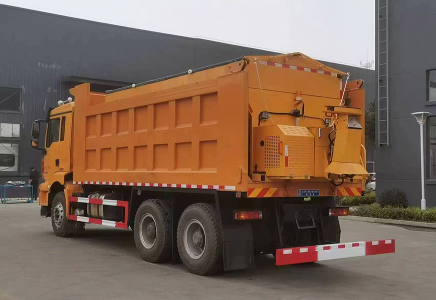 | 上裝配置 | 箱體采用優質碳鋼板,標配10立方撒布機也可以選裝12立方,不銹鋼撒布機甩盤,撒布盤直徑550mm,撒布機采用 V 型料倉,結構簡單可靠,使融雪劑自動落料,出料完全,無殘留,箭頭燈、篷布、過濾網、后爬梯。加裝3.5米雪鏟,可切換3.5米除雪滾刷(滾刷可選自帶動力或者液壓取力)。 | ||