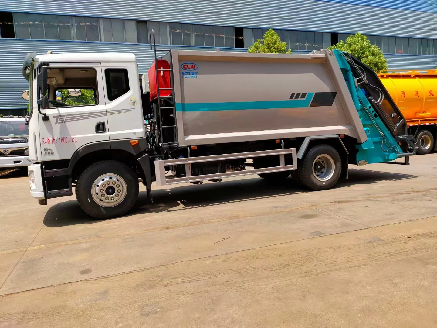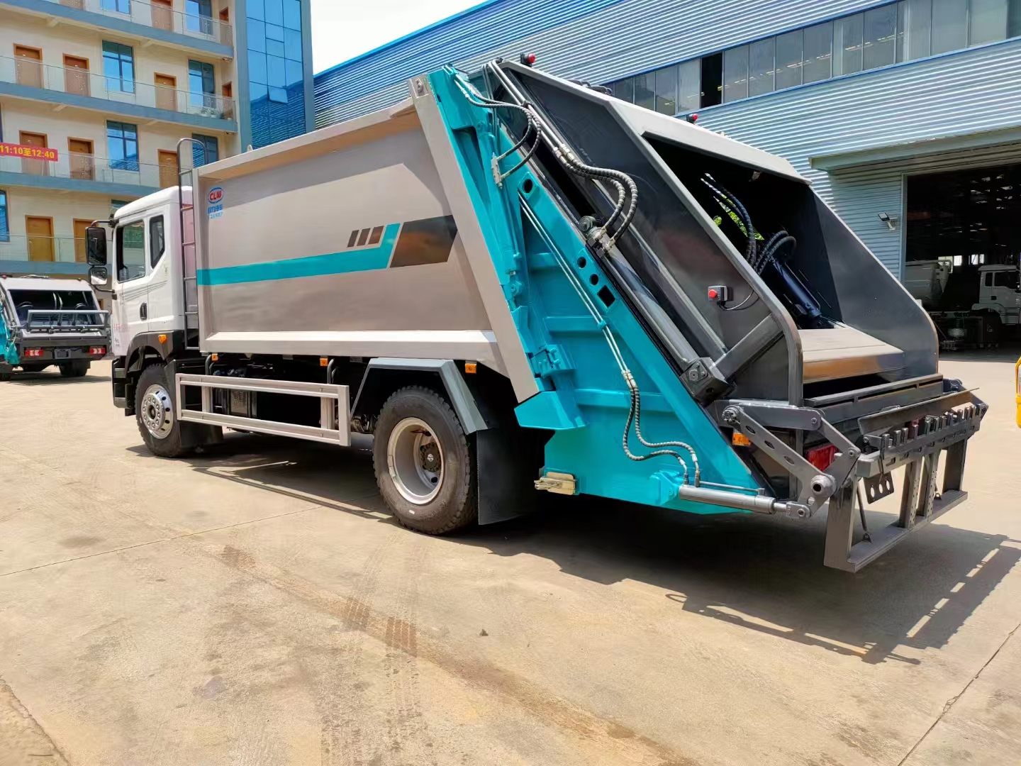上裝配置 箱體容積14立方,采用邊四底五高強板制作,填裝器外置滑板油缸結構,機器人自動焊,電泳工藝涂裝,威森博樂多路閥,皖液油泵,填裝器外置滑板油缸結構,尾部翻轉結構可掛120/240L垃圾桶,選裝全密封斗/三角斗。