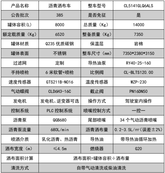 ??????湖北程力汽車:程力CL5141GLQ6ALS陜汽德龍8立方瀝青灑布車產品型號及參數配置,程力CL5141GLQ6ALS陜汽德龍8立方瀝青灑布車高清圖片,程力汽車系列程力CL5141GLQ6ALS陜汽德龍8立方瀝青灑布車最新報價請撥打客服熱線。車輛主要配置 產品商標 程力牌 公告批次 385 產品名稱 瀝青灑布車 產品型號 CL5141GLQ6ALS 總質量(Kg) 14000 罐體容積(m3) 7.52 額定載質量(Kg) 6520,6455 外形尺寸(mm) 7350,7390 × 2380 × 3150 整備質量(Kg) 73...