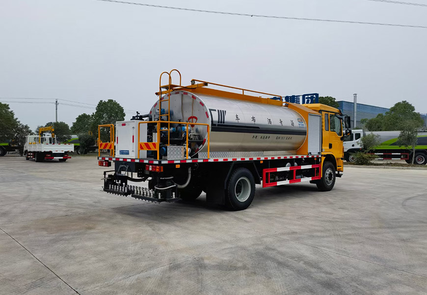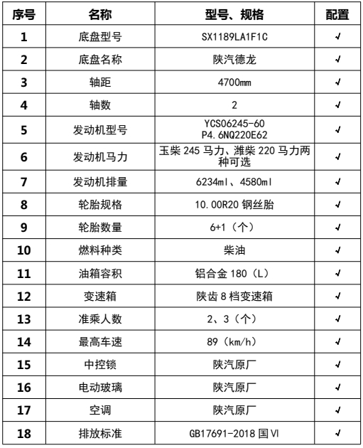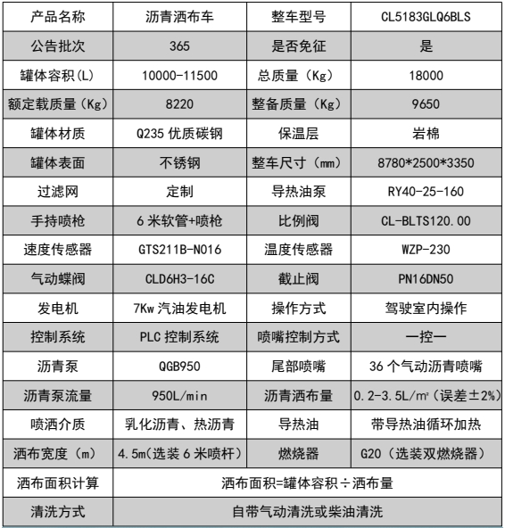 1,僅采用軸距4700mm; 2、該車廣泛應用于修筑高等級公路瀝青路面灑布作業,主要專用裝置瀝青罐體,瀝青噴灑系統,罐體總容量:9.5立方米, 有效容積:9.06立方米,罐體外形尺寸(長×長軸×短軸)(mm):4150×2450×1700,介質:液態瀝青,密度:900千克/立方米;罐體保溫層厚度為80mm;3、側防護材料采用Q235,焊接連接;后防護由專用裝置代替,下邊緣離地高480mm;4、ABS系統生產廠家:西安正昌電子股份有限公司,型號:ZQFB-V. 后部照明燈僅在駐車狀態下使用,起夜間照明作用,行駛過程中不可點亮。隨底盤選裝駕駛室。選裝排氣管樣式。